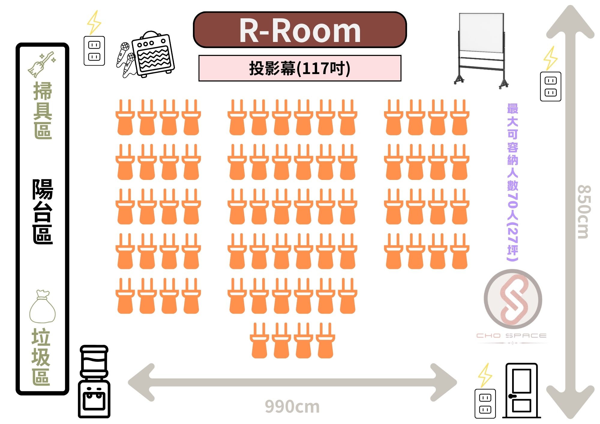 •請勿任意搬動非租借之公設物品,例如:其他空間之桌椅、垃圾桶、入口處背板。